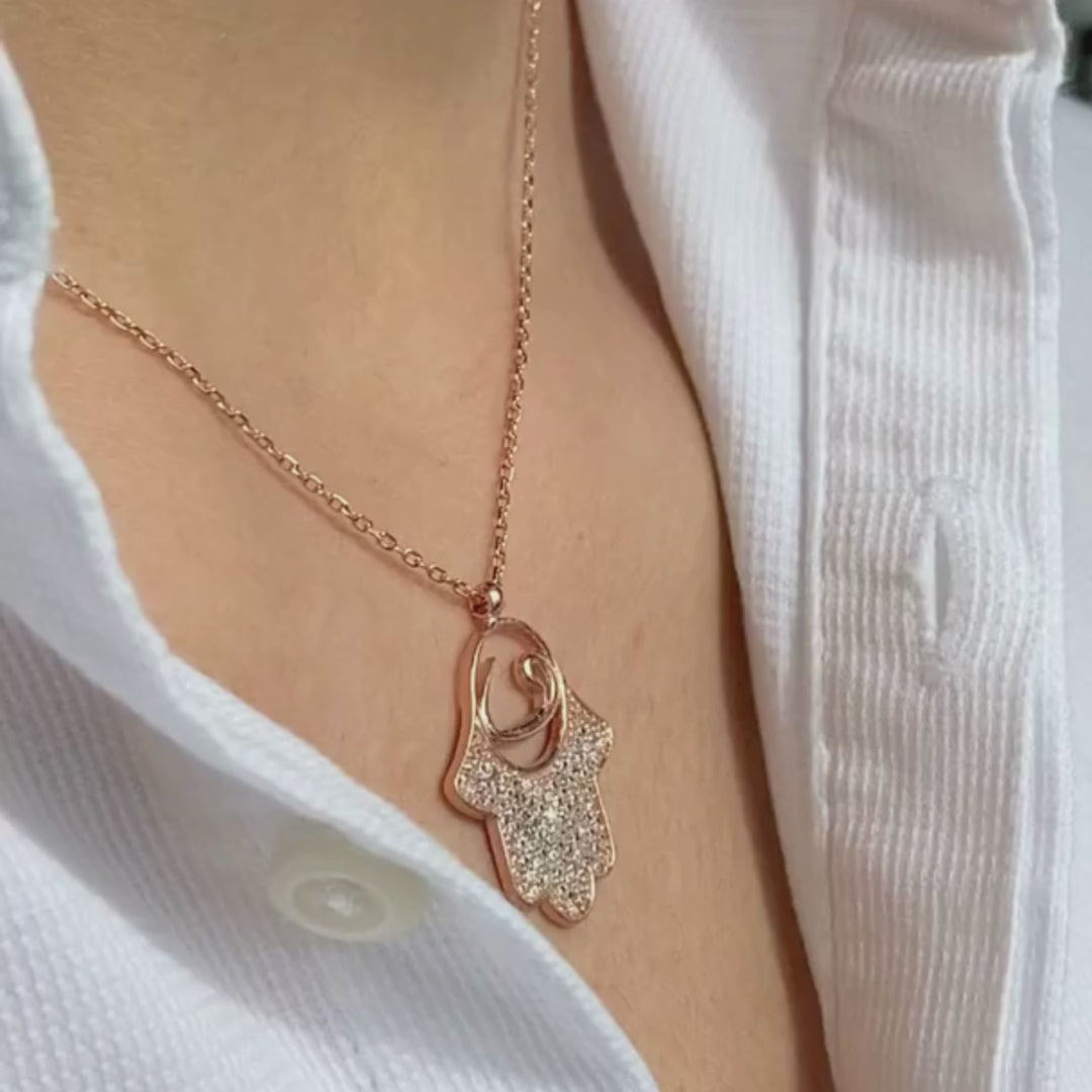 Elegant Hamsa Silver Necklace Rosegold