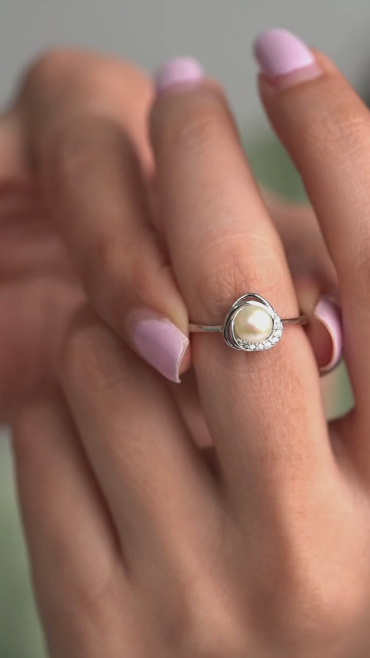 Silver Twisted Halo Pearl Ring